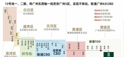 在交通上,项目直线距离地铁13号线新沙站约1公里。13号线是广州东西向的重要骨干线路,串联新塘、鱼珠、天河核心区,对通勤族来说非常友好。无论是前往黄埔、天河,还是日常城市通行,都有清晰稳定的路径。