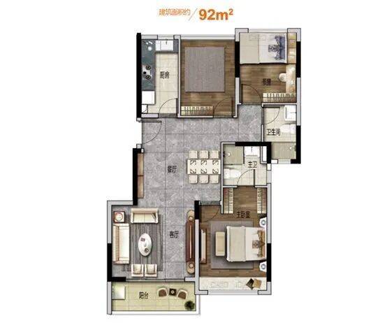 92㎡小洋房:一梯两户,仅9层高,私密性强;4米客餐厅大开间,主卧套房带衣帽间,使用率达87%,实现“三房四房化”体验。