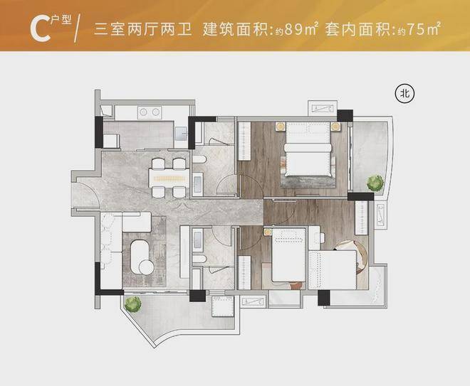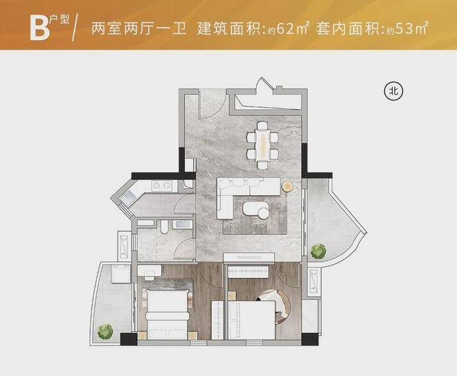 悦雅居主推62m²、66m²两房,88m²、95m²三房,单价在3万/m²。