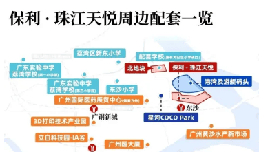 交通方面,项目距离地铁10号线东沙站直线约700米,步行即可到达,未来实现零换乘直达珠江新城。自驾方面,邻近白鹅潭大道及东沙石岗隧道,可快速通达海珠西及城市各主要区域。此外,规划水上巴士及港湾码头,让滨水生活成为日常可能。生活配套方面,项目周边拥有广州国际健康港、星河COCOPark、万象城、双太古商业及广船商业综合体等大型商业体,满足日常购物、娱乐、休闲和社交需求,真正实现“出门即享繁华”。
