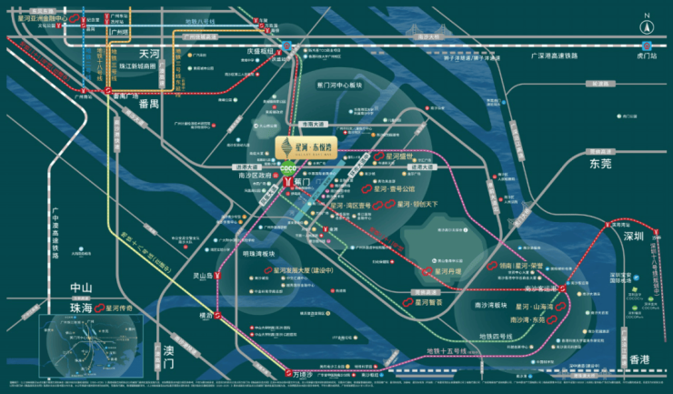 1、【海陆空立体交通】蕉门TOD,4号线、22号线东延段(规划中)、15号线(规划中)3地铁交汇,规划连通莞深,全国屈指可数,核心地段雏显;庆盛、南沙双轨道枢纽、邮轮母港、深圳宝安机场环绕,1小时畅达大湾区城市群。