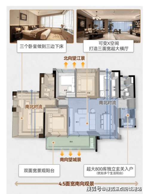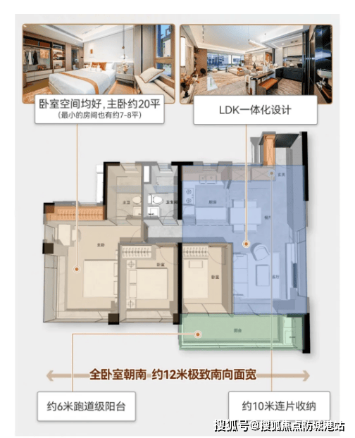 项目在户型设计上充分考虑广府人的居住习惯,基于地块规划中阳台占比可达 20%、主阳台不限制进深的优势,打造出 “好住好看好用” 的户型产品,实现超级采光、超级景观、超级实用三大升级。首推建面约 84-107㎡全南向超新规三 / 四空间,且在楼栋设计上反复测试,将楼栋朝东南向扭转,做到户户全南向,满足广府人对朝向和通透性的执着。其中,82 平三房两厅两卫户型,所有卧室均朝南,南边为客厅、卧室,北边是双卫、厨房,通风采光俱佳,还带有入户花园、双开间大阳台、LDK 公区,主卧卫浴也做了干湿分离;建面约 108㎡户型,交付的大横厅通过打通次卧,可变身三面宽超级横厅,能解锁接近 20 种生活方式,实用性与灵活性极高。