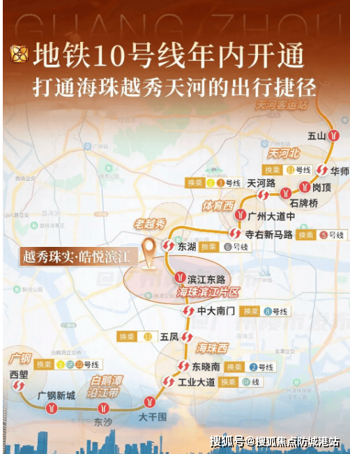 答:自驾通过江湾大桥可直连越秀区、瞬达天河;目前最近 2 号线市二宫站约 1.2 公里需接驳,东侧 10 号线滨江东站在建中,未来公共交通将更便捷。
