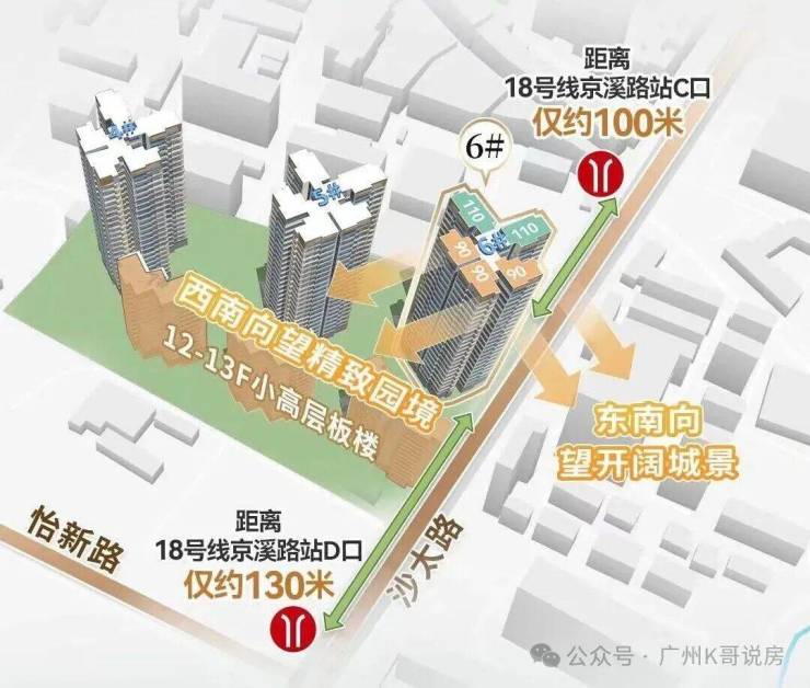 云悦二期算是一个双地铁项目。一来,家门口就是18号线京溪路站。未来业主,下楼乘坐18号线,就能一线直达琶洲(磨碟沙站)、珠江新城(冼村站)、天河北(广州东站),万博(南村万博站),根本不需要换乘。而步行约800-900米,就能到达3号线梅花园站。同样,乘坐地铁无需换乘,便能抵达体育西路、珠江新城。