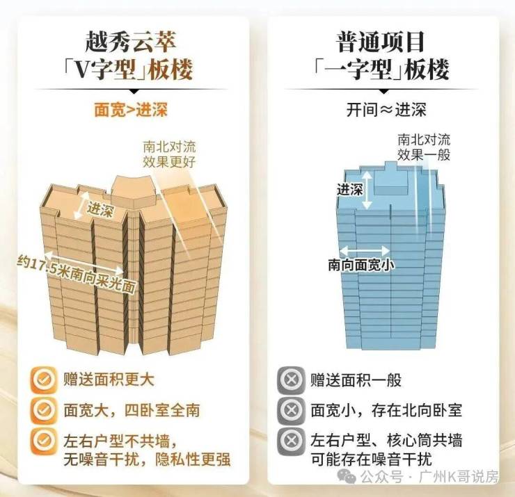 云萃的独创的「V字型」板楼,真正做到了开间>进深。有什么好处呢?