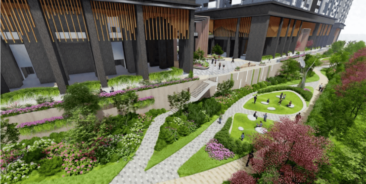 小区的居住舒适度在细节处得到了极致体现。绿化率高达30%,规划有3万㎡的城市绿化广场,由日本凤园艺大师亲自设计立体六维园艺空间。1KM慢跑道与休闲公区,为业主提供了城市中的自然休憩场所。建筑采用绿建三星+LEED金级双认证标准,运用"6+12+6"中空low-e玻璃,隔热隔音效果卓越。海绵城市理念的融入,使得雨水回收利用率高达75%,有效缓解内涝问题。车位配比达1:1.33,地下车库直通地铁站厅层,实现了“下雨不湿鞋”的归家体验。物业管理由新世界旗下锦日物业负责,物业费4.5元/㎡/月,提供24小时安保、智能门禁等服务,全方位保障社区生活的有序与安全。