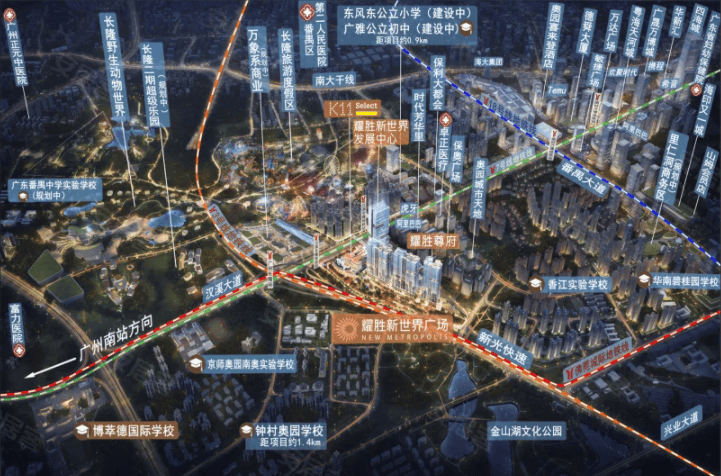 更为重要的是,耀胜新世界周边900米处,有一块由广州市东风东教育集团办学的教育地块。东风东教育集团是广州市著名的教育集团之一,旗下有多所知名学校,以其先进的教育理念、优质的师资力量和卓越的教学成果而著称。这块教育地块的引入,将进一步丰富区域内的教育资源,提升整体的教育水平。孩子们可以在家门口享受到东风东教育集团的名校资源,这无疑是一个巨大的利好。