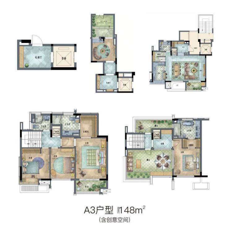 下叠南向花园,尽享阳光与私人空间;中叠北向花园,布局合理功能完善;上叠入户庭院与超大露台,独具特色。每个户型都有独享庭院空间,满足现代家庭对私密性与舒适性的追求。