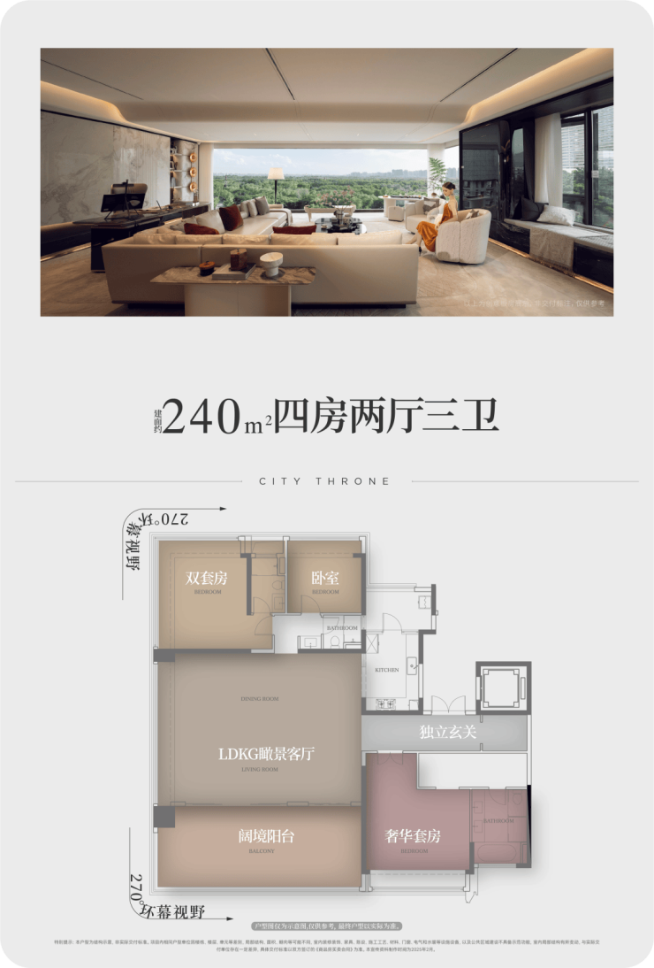 本宣传资料不构成邀约邀请,对周边、政府规划、商业配套、教育资源、投资前景等数据和图文仅为提供相关信息,该信息以政府最终批文为准,开发商不对此作任何承诺。买卖双方的权利义务以双方签订的买卖合同约定及附件、实际交付为准,本公司保留对宣传资料修改的权利,敬请留意最新资料。