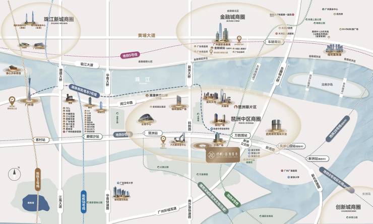 保利琶洲四季项目坐落于海珠区新港东路琶洲村口对面,地理位置得天独厚。其北依琶洲眼、保利天悦等成熟商业住宅区,南眺羊城最大城市绿心 ——“广州万亩果园”,西临琶洲塔公园城市景观,东接黄埔古村及古港。如此优越的地段,不仅周边商业配套成熟,更具备巨大的发展潜力。