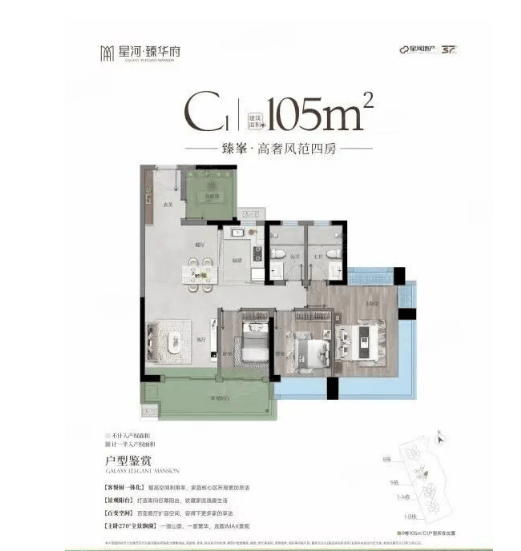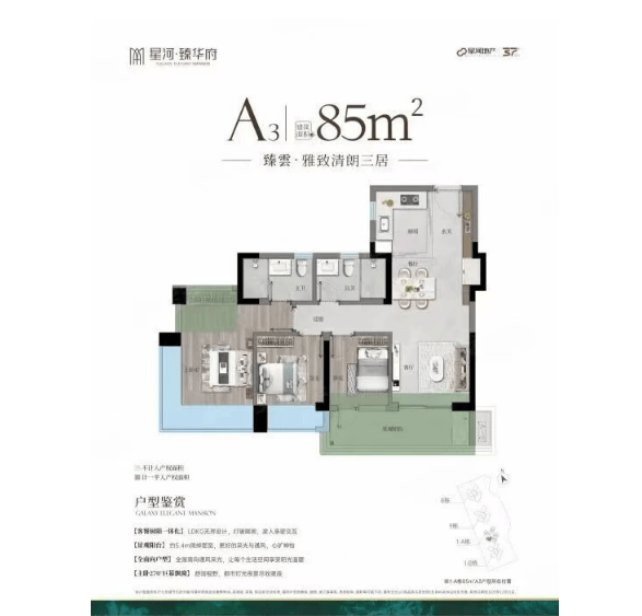 星河臻华府推出了多种户型供购房者选择,面积从约85平方米到125平方米不等,涵盖三房至四房的多种配置。所有户型均采用全南向布局,确保每套房子都能获得最佳的采光效果。精装修标准高,细节处理到位,大面玻璃窗搭配竖向真石漆及局部香槟色金属线脚勾边,既精致又奢华。当前价格已有所下调,对于有意购买的客户来说是一个不错的机会。