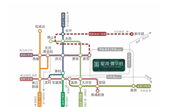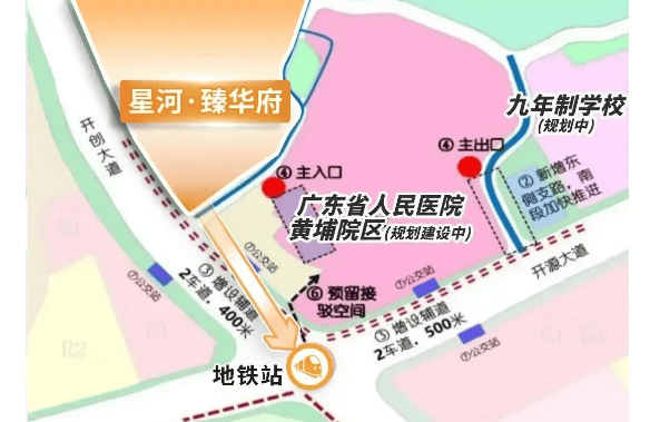 尽管星河臻华府距离最近的地铁站有一定距离(大约2公里),但未来地铁6号线东延段将在附近设站,这将极大地改善居民的出行条件。目前,公共交通主要依赖于公交车接驳。项目周边的道路网络发达,包括广深高速萝岗立交、京港澳高速等,便于自驾出行。此外,地铁口与广东省人民医院黄埔分院的距离也非常近,方便居民就医。