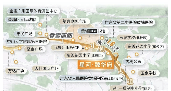 星河臻华府致力于打造一个开放式的社区环境,通过双首层设计将商业与住宅有机结合。项目周边拥有萝岗万达、奥园广场等大型商圈,以及宝能演艺中心、黄埔图书馆等文化体育设施,丰富了居民的业余生活。医疗方面,除了即将建成的广东省人民医院黄埔分院外,项目周边还有两家三甲医院,为居民的健康保驾护航。此外,古树公园和特色文化广场等公共空间也为居民提供了休闲娱乐的好去处。