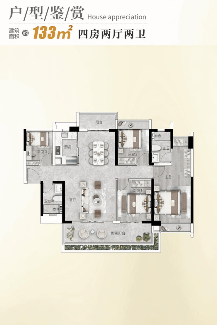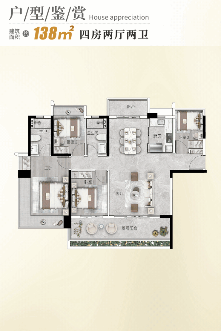 作为广地花园的收官之作,【观璟】组团由南驰集团31年匠心打造,代表项目最高产品标准。首推23栋,主打105–138㎡新规三至四房,使用率超100%,实现从“够住”到“优居”的跨越。