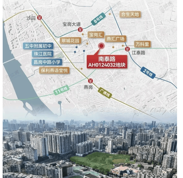 在具体的微观区位上,保利海玥紧邻地铁8号线宝岗大道站,步行距离仅约400米,未来北侧新增出入口后,这一距离有望缩短至300米左右。地铁8号线作为广州轨道交通线网中的东西向大动脉,东起万胜围,西至滘口,贯穿了琶洲人工智能与数字经济试验区、珠江新城、体育西路、北京路等广州最核心的商务区与商业中心。这意味着居住在保利海玥的居民,只需乘坐几站地铁,即可轻松抵达珠江新城CBD,参与全球级的商业活动;或者前往琶洲会展中心,见证科技与经济的飞速发展。此外,项目距离2号线和11号线的换乘站江泰路站也仅约900米,2号线连接了广州南站、广州火车站等交通枢纽,11号线作为广州首条环线,将把全市的主要商圈和交通枢纽紧密串联起来,极大地拓展了居民的出行半径和生活圈范围。