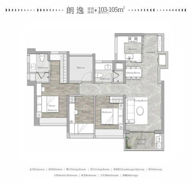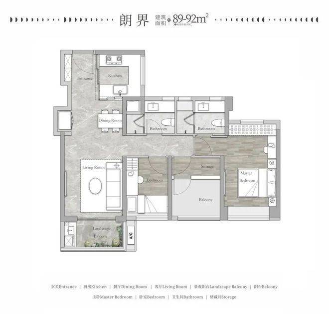 ①极阔尺度:横厅三房设计、阳台进深约1.8米,主卧约16㎡