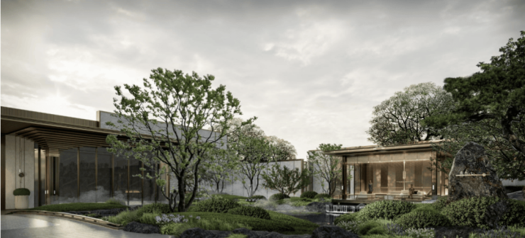 A:约1.6万方新中式园林,包含曲水飞虹、万倾涵碧、松间、观澜等景观组团。