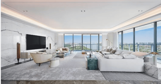 户型设计是鹏瑞皓玥湾的另一大亮点。项目起步门槛即为280平方米的大平层,套均总价高达1600万元,这在佛山市场实属罕见。超大尺度的空间布局,为业主提供了无限的可能性。无论是家庭聚会、商务宴请,还是私人休闲,都能找到合适的空间。户型设计充分考虑了业主的生活习惯与社交需求,设置了宽敞的客厅、独立的餐厅、豪华的主卧套房以及多功能房间。同时,项目还引入了270°弧形甲板阳台与全景玻璃幕墙等创新设计,将室内外空间无缝连接,极大地拓展了居住视野,让阳光与风景成为家中的常客。