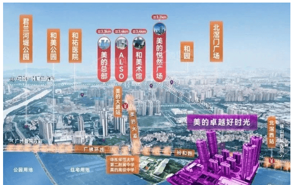 交通通达性是衡量一个楼盘价值的重要指标,而美的卓越好时光在这方面表现尤为亮眼。项目周边形成“双地铁+一城轨”的立体交通网络:距离广州地铁7号线美的大道站约1.5公里,可直达番禺万博、汉溪长隆等热门板块;距佛山地铁3号线北滘西站仅约1.3公里,无缝衔接禅城、桂城等佛山核心区。此外,广佛环线(佛山段)北滘西站已开通运营,2站即达广州南站,2站抵达佛山新城,还可直通禅桂核心,高效串联起广佛两地的商务、文旅与生活资源。对于每日往返广佛的上班族而言,通勤时间大幅压缩,生活半径显著拓展。值得注意的是,项目所在板块新房均价仅为番禺同类地段的约三分之一,性价比优势突出。