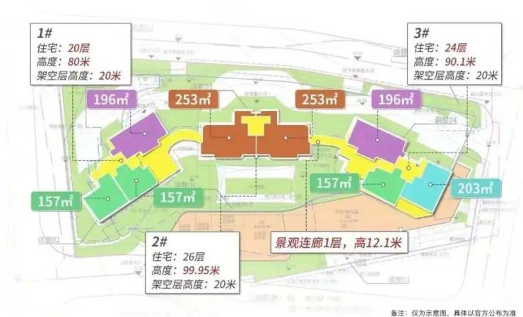 景观视野:整体小区设计抬高约30米,延展架空层立体都市园林,即便是最低3层的业主,景观和视野能超过周边的建筑,不用担心视野遮挡,私密性非常好。
