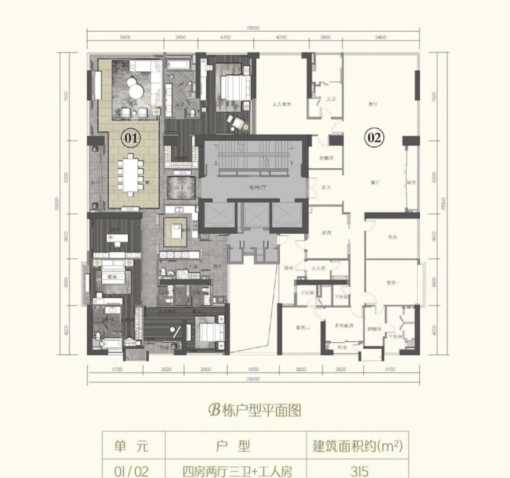 海珠半岛三期主打290~315㎡江景大平层,每户户型均为4+1房设计,层高3.4米,三梯两户配置,入户大堂挑高9米。官方数据显示,户型使用率高达93%,三面采光和270°临江视野让每个房间都能享受自然光和江景视野。室内布局方正实用,客餐厨阳台一体化,超大横厅设计既方便家人聚会,又保证通风顺畅。290㎡户型适合四口之家,315㎡户型适合多代同堂或需要更多生活空间的家庭。官方资料显示,项目高层楼栋4~43层均配有私密电梯厅和高端智能安防系统,实现空间私密与舒适性兼顾,同时保证居住者能充分享受临江景观的价值体验。