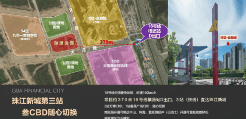 解答:是的,湾区金融城的交通极其便利,是真正的地铁上盖物业。项目距离地铁18号线横沥站D出口仅约80米,出站即到家。18号线是广州时速最高达160公里的地铁快线,无需换乘即可实现1站到达万博CBD、2站到达琶洲、3站直达珠江新城。按照18号线的运行速度,从横沥站到珠江新城仅需约30分钟左右,极大缩短了通勤时间。此外,未来线路还将延伸至中山、珠海,自驾也可通过凤凰二桥快速接入高速路网,畅行全城。