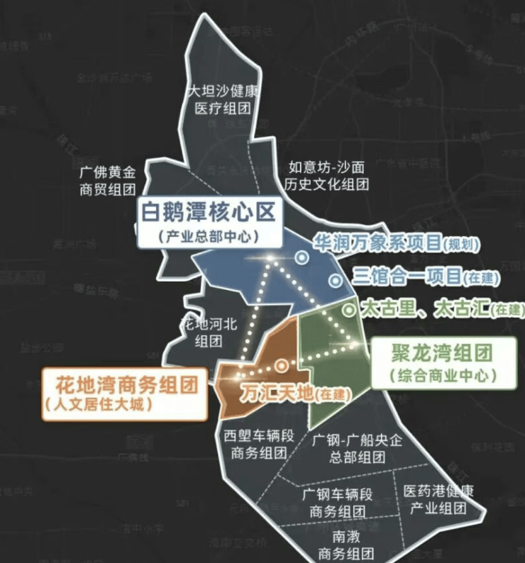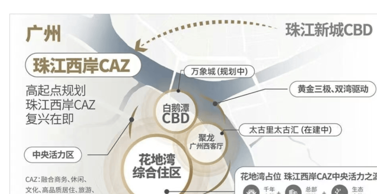 ✅ 板块规划优势:花地湾片区基本都是由万科统一开发,汇合白鹅潭-花地湾-聚龙组团的板块张力,白鹅潭核心区、聚龙组团、花地湾组团,于半径约2KM内构建珠江西岸CAZ黄金三极,打造“产、商、住”一体新城市中心,是国家战略支点,湾区极点辐射三大都市圈(来源:荔湾区人民政府官网2026年最新规划)。