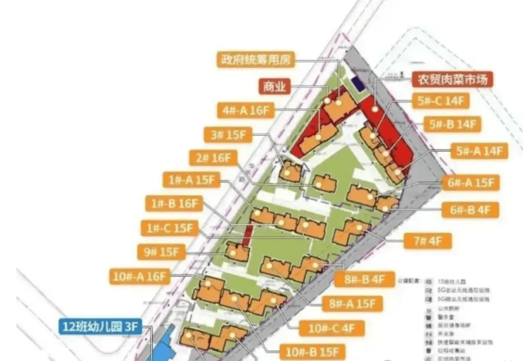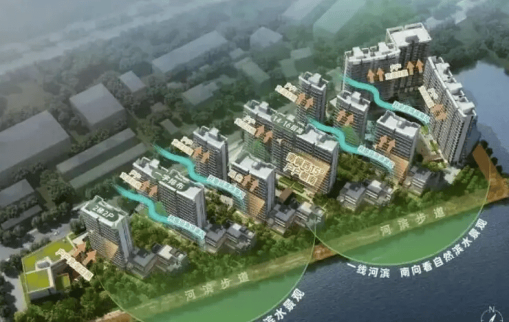 建筑类型包括16栋14–16层小高层与5栋4层临河叠墅,整体采用“南低北高”布局,确保每户采光与景观视野;