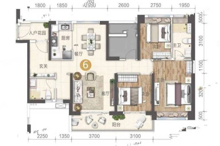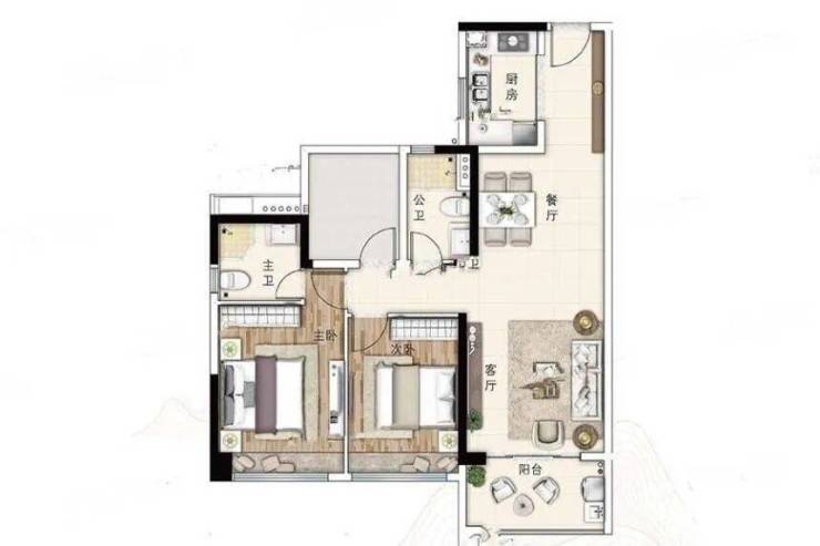 布局:主卧套房带独立卫浴,超大阳台(约6.8米)连接客厅与次卧,实测通风效率提升30%;