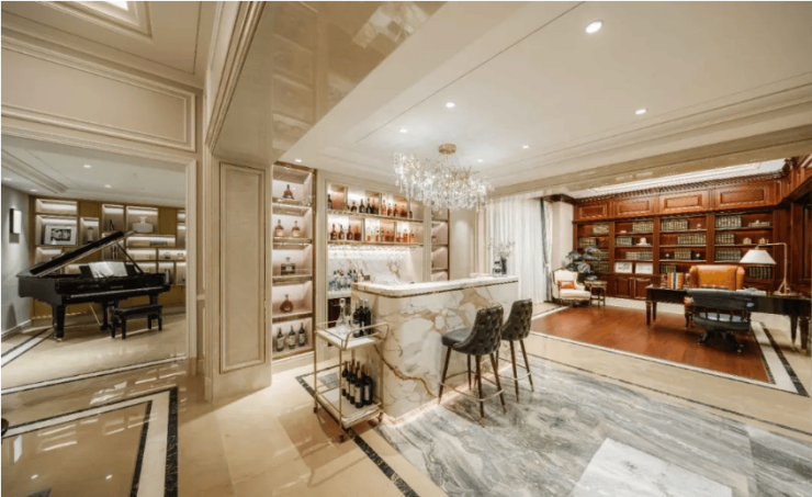 精装标准:毛坯交付,预留个性化装修空间 天颐华府目前在售的392㎡类独栋湖景别墅,采用毛坯交付标准,兼顾业主个性化装修需求,同时在建筑细节上融入高端豪宅匠心标准,为业主打造高品质居住基底。项目首推别墅曾采用全屋豪华装修交付,工艺细节严苛,例如地花上的石材水刀拼花波打线,由三种欧洲进口石材美学铺叠,切割、铺砌精度极高,每两块石材之间缝隙不超过0.5毫米,即便毛坯交付,建筑本身的品质也经得起检验。