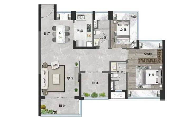 建面约87㎡ 2+1房2厅2卫:精致实用,适合小家庭或新婚夫妇。双卫设计保障生活品质。