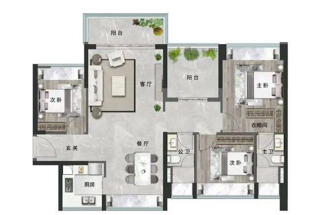 建面约107㎡ 3+1房2厅2卫:宽敞舒适,适合三代同堂或二孩家庭。双卫设计方便家庭成员使用。