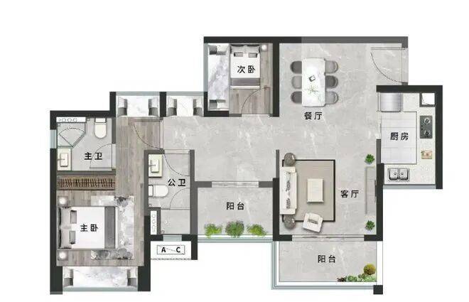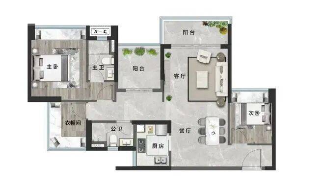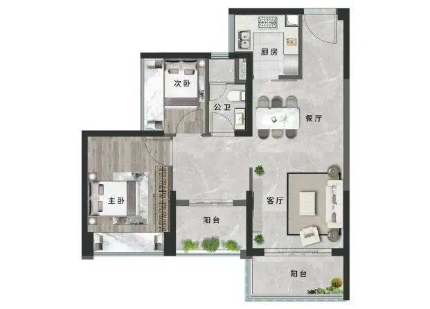 建面约72㎡ 2+1房2厅1卫:小户型低总价,适合单身人士或预算有限的刚需购房者。增加空间灵活性。