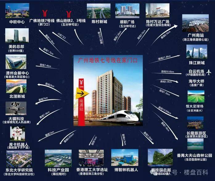 真正的地铁上盖与广佛双城通勤:项目距离广佛线 7 号线南涌站 A 出口仅 5 米,是名副其实的地铁上盖物业。这一交通优势极大地缩短了通勤时间,5 站到广州南站,8 站到珠江新城,让工作在一线城市、居住在卫星城的梦想变为现实。无论是依靠地铁出行,还是开车经 105 国道往返,都能享受到高效便捷的立体交通网络。