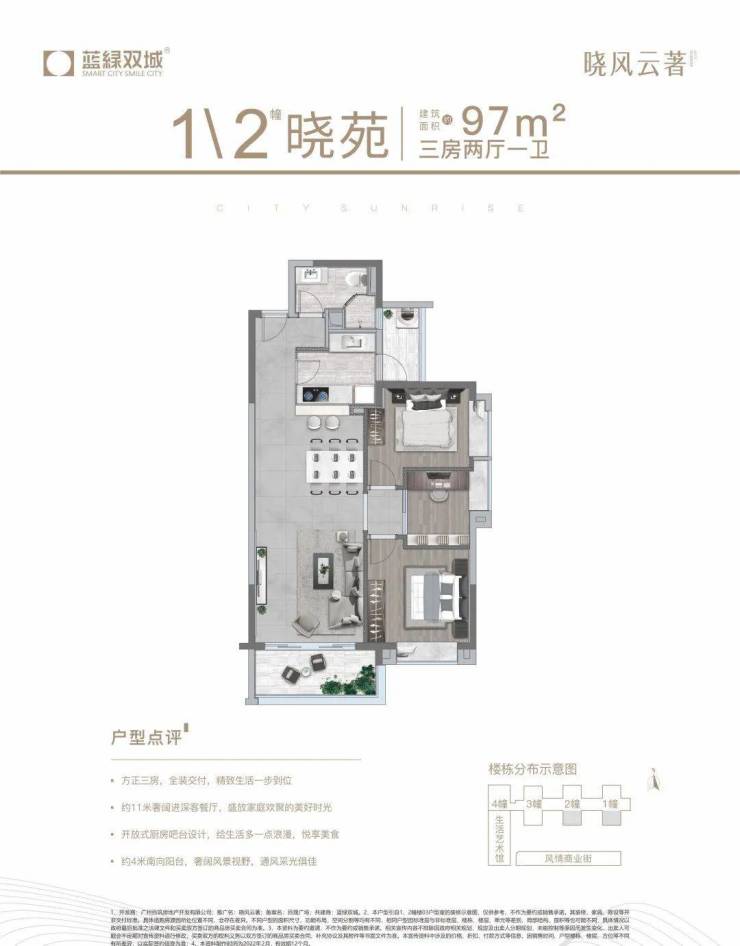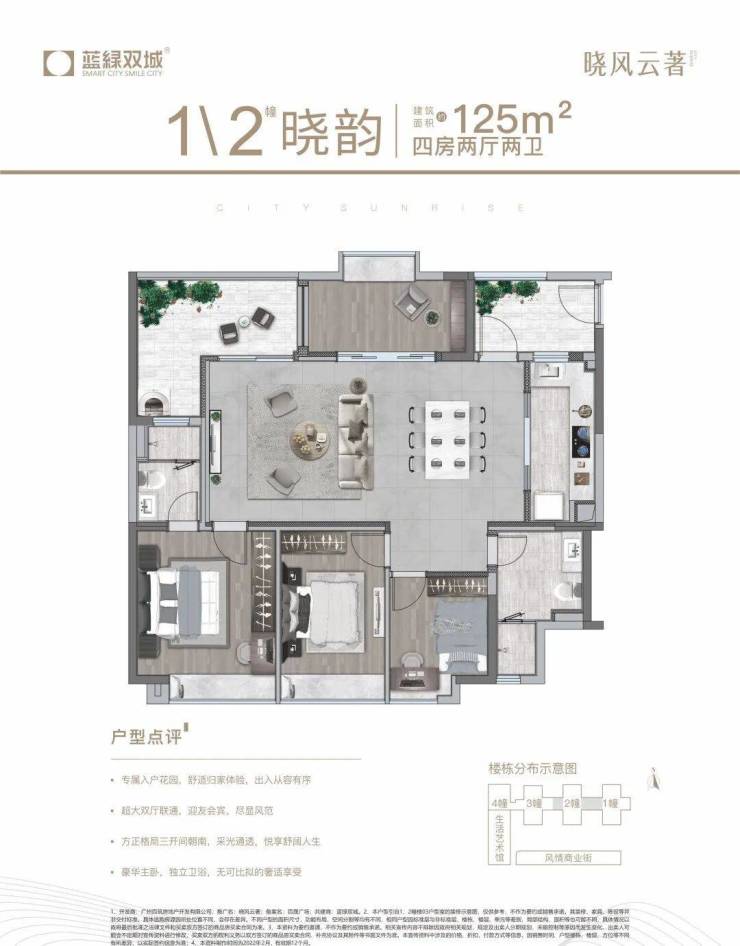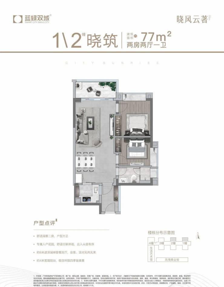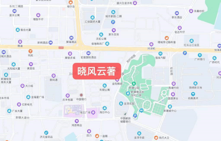 晓风云著位于广深大道中以南,新塘公园以西,新塘广场、地王广场以北。其占地面积约 1.6 万㎡,总建面约 12 万㎡,绿化率为 30%,主力户型为约 77 - 125㎡的二至四房单价1.2万精装现房