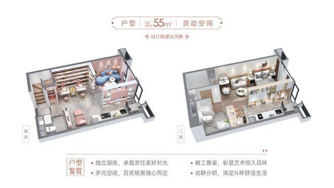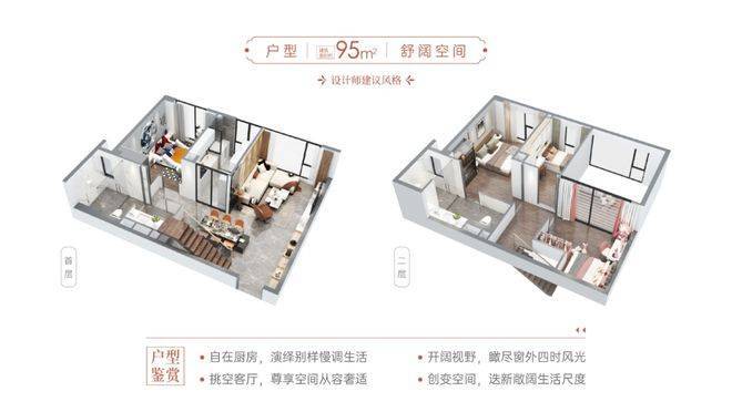 还有 95㎡轻奢 mini 墅,4.5 米挑空视野开阔,推窗揽园景观极致。55㎡臻品明厨型明火入户,空间灵动百变。47㎡分租型空间百变。这些户型层高优势明显,空间利用率高,得房率在同类产品中表现突出。