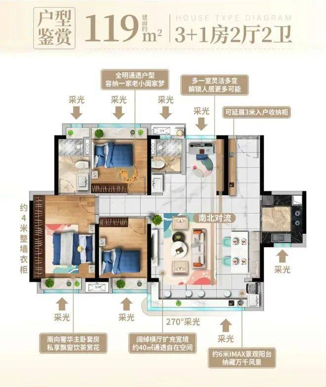 119㎡四房:南北通透设计