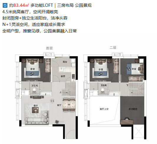 主推产品包括约25-92㎡轻奢平层公寓和约45-95㎡灵动LOFT,满足不同需求的生活方式。