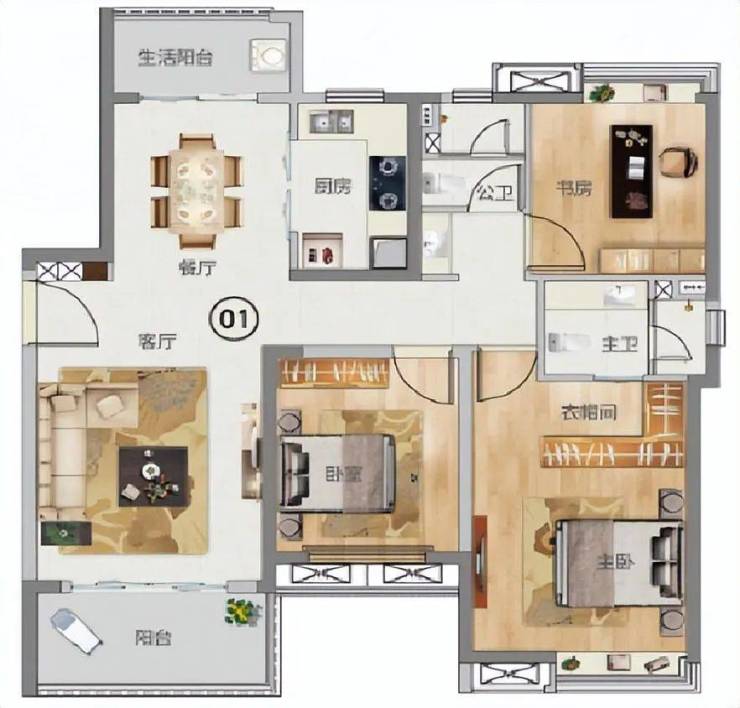 超大主套设计,独立卫生间、衣帽间,主人居住舒适度拉满。