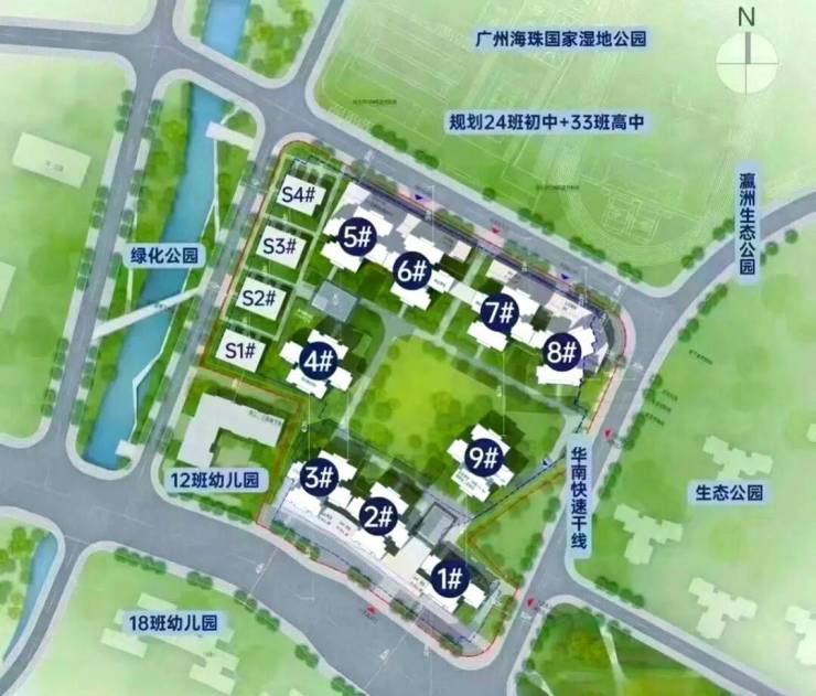 从地理位置上看,珠光海珠新城可谓得天独厚。它地处广州新中轴线南段,北望浩瀚的海珠国家湿地公园,南临波光粼粼的珠江后航道。这种“北拥湿地、南临珠江”的格局,赋予了项目无可比拟的生态优势。想象一下,清晨推开窗,映入眼帘的是郁郁葱葱的湿地植被和飞翔的候鸟;傍晚时分,伫立阳台,俯瞰的是珠江的壮丽景色和城市的璀璨灯火。这种“城央隐居”的生活体验,在寸土寸金的主城区实属难得。