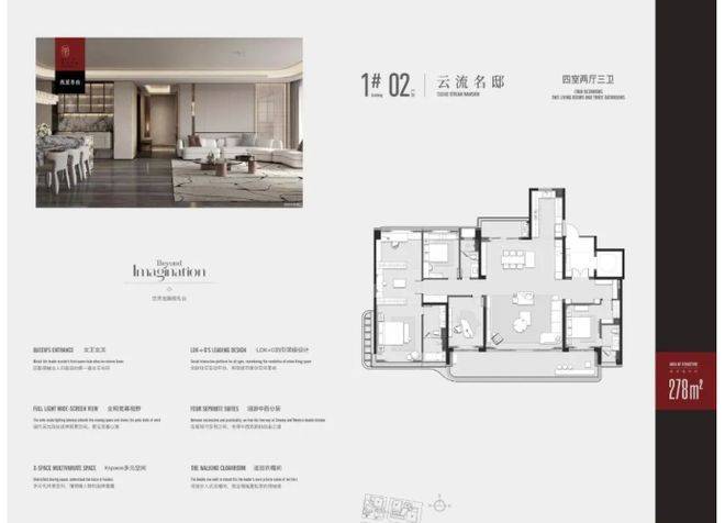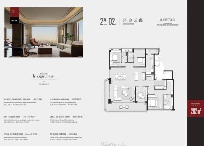 建筑设计是西派尊府的一大亮点。选取白玉兰符号为主要形象,与 “木棉花开” 的 IFF 交相映衬,既展现了地域文化特色,又彰显了建筑的独特魅力。南向江面的公建化立面,搭配大面积 LOW - E 玻璃幕墙,不仅提升了建筑的美观度,还具有良好的保温、隔热和隔音性能,为业主营造舒适的居住环境。从远处眺望,这座全新的美学地标矗立在岛尖,成为城市的一道亮丽风景线。整体建筑布局前低后高,打造约 80 - 100 - 150m 地标天际线,这种布局不仅使建筑在视觉上更具层次感,还实现了首排沿江 100% 看江率,让每一位业主都能充分享受江景资源,提升居住品质与生活格调。