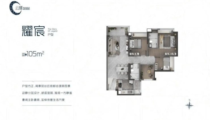 1. 户型设计:120㎡五房,弹性空间满足多元需求