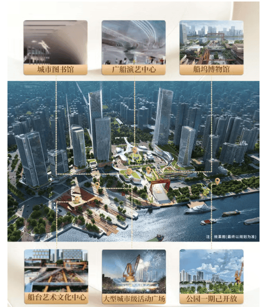 项目不仅拥有优越的自然环境,还配备丰富的文化设施,周边人文气息浓厚,为业主提供高品质的精神文化生活。项目二期规划有约2.5万㎡大型文化配套集群,将逐一落地,包括城市图书馆、船坞博物馆、广船演艺中心、大地艺术岛、船台艺术中心等一系列城市公共文化空间,其中船台艺术中心已封顶,未来将成为白鹅潭板块的文化新地标。