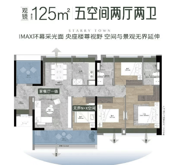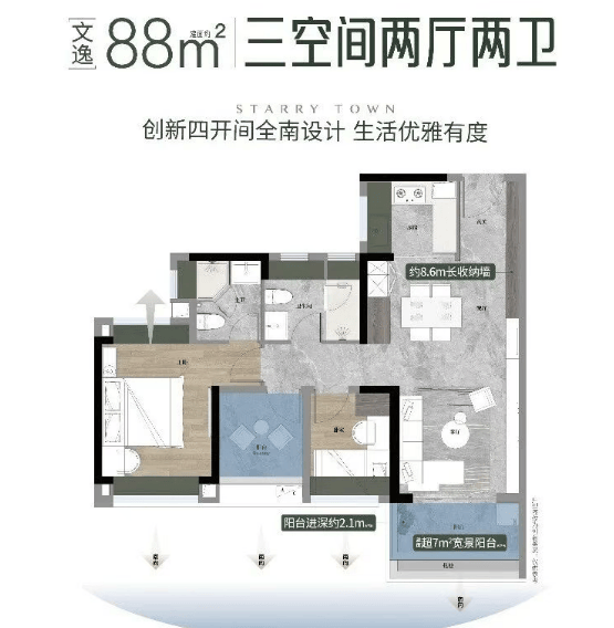 客餐厅南北对流,百变大方厅,餐客一体化设计,双面宽观景阳台。