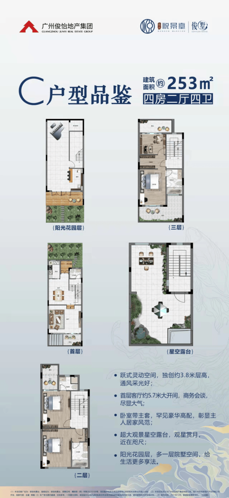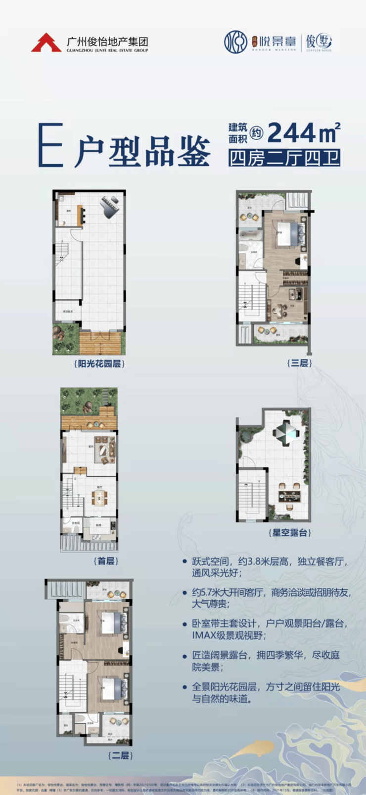 花都中轴线上,约三万亩湖山生态大境旁,俊怡悦景台倚望4A级景区芙蓉嶂。引芙蓉活水入园,打造“五感”亲水园林,4A景区旁2.2低密墅质社区,新亚洲风格设计匠心独运。7米超宽阔景阳台,楼栋点式一字排布,奢阔楼距尽显匠心,建面约238~338㎡湖山低密联排别墅,即将面市!推窗即可北眺万亩芙蓉嶂,南望百亿文旅城。