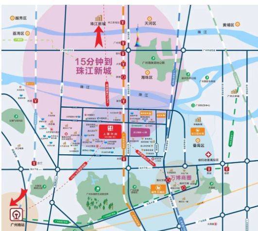 核心地段:距离珠江新城地标仅 11 公里,地处番禺区中心商圈,尽享城市核心区域的繁华与便利。千年广州城,以珠江为脉,上馨华府与珠江新城、广州塔、十三行等重要地标直线距离相近,彰显其优越的地理位置。