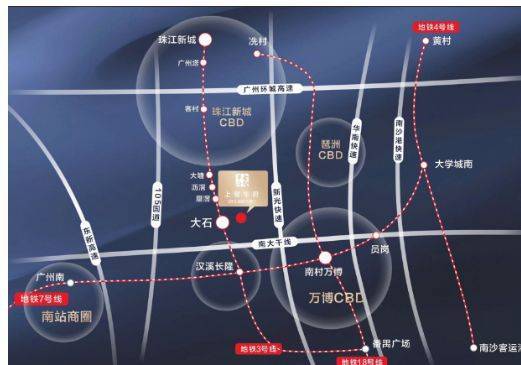 地铁出行:距离地铁 3 号线大石站仅 900 米步行距离,从大石站乘坐地铁 6 站即可直达珠江新城,为业主日常通勤和出行提供了极大的便利,轻松畅达城市核心区域。