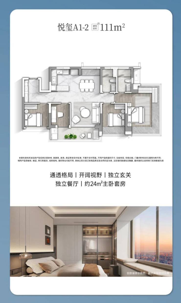 项目主力在售户型为108-300㎡全龄改善户型,涵盖四房等多种户型,可满足不同高端改善客群需求。其中108㎡悦玺A-2户型为南向四房,采用连续采光设计,打造空间舒适度;X空间可灵动改造,适配全龄生活所需;半开放式中西厨搭配LDKG一体化布局,社交从容有序;约24㎡朗阔主卧套房,270°沉浸式观景,尽享城市美景。111㎡悦玺A1-2户型则为全明通透格局,五开间朝南,悦享阳光舒适;独立玄关与独立餐厅设计,优享生活的日常仪式感。项目实用率约95%,远超区域平均水平,空间利用率极高(数据来源:番禺区华润万博悦府官方户型备案文件)。装修方面,项目带装修交付,选用国内外知名品牌建材,保障居住品质。