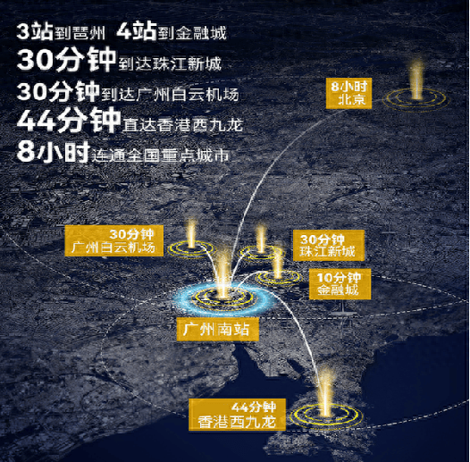 地铁:项目紧邻广州首个四地铁换乘站,轻松实现10分钟直达万博CBD、25分钟直达琶洲/珠江新城CBD。