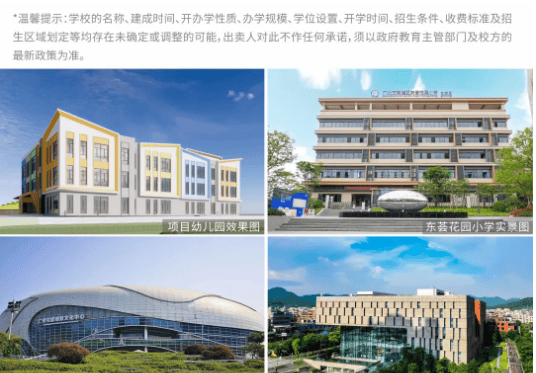 此外,项目周边东荟花园小学等优质学校环绕,东荟花园小学距离项目约3公里,驾车仅需10分钟左右,该校教学质量优良,口碑出众,为业主提供了更多教育选择。从幼儿园到初中,全龄段教育资源加持,让孩子在书香氛围中成长。